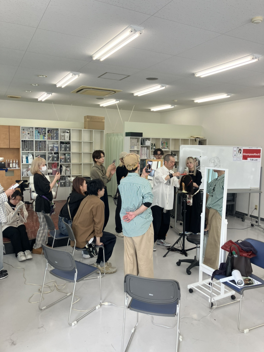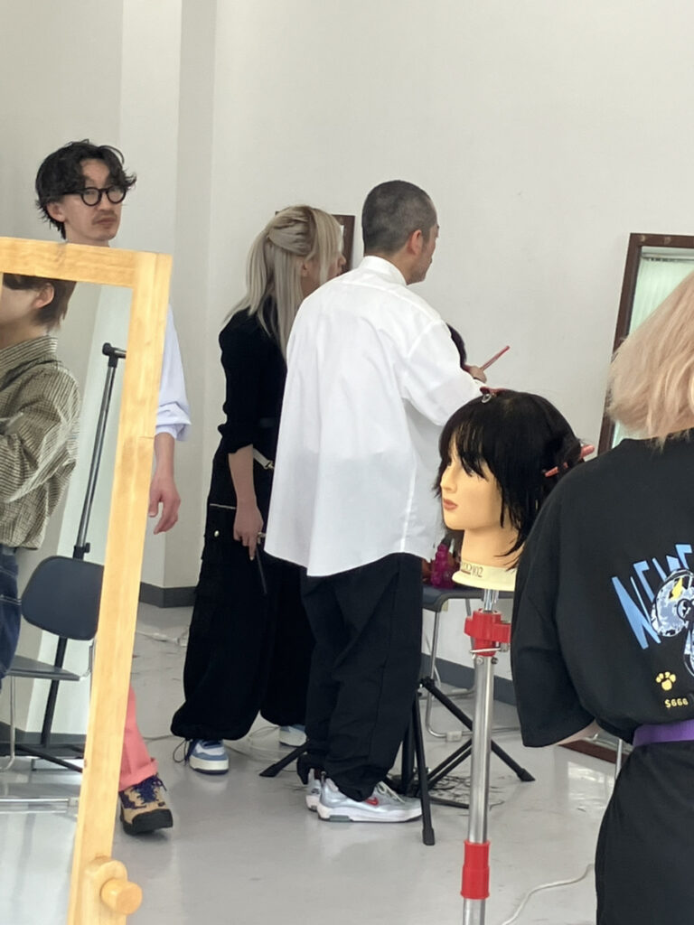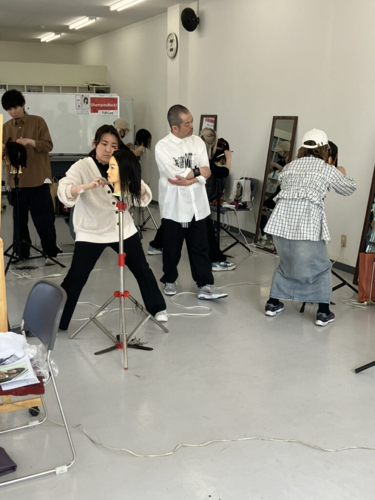 ■15時15分~16時:大尾さんの解説を踏まえてドライからセニング、最後のスタイリングまで実習。→完成した順に一人一人に大尾さんからフィードバック、アドバイス。
